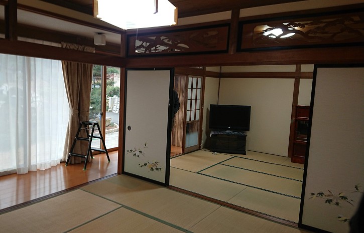 二間続きの和室。一部屋は茶の間として使っていましたが、もう一部屋は片付けてあるだけで、特に使っていない様子。聞けばやはり、来客用にとってあるけれど、なんだかんだで人が来たら茶の間に通してしまうとのこと。そこで、私はこう提案いたしました。